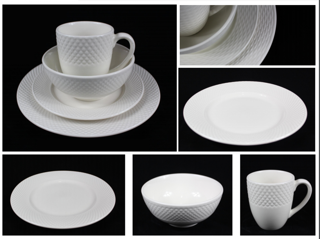 Product Description Aftersales White 20-Piece Set:four 4-piece place setting. Item No.:SX-08 Bone China Superior quality and design Dishwasher,microwave,and warm oven-safe