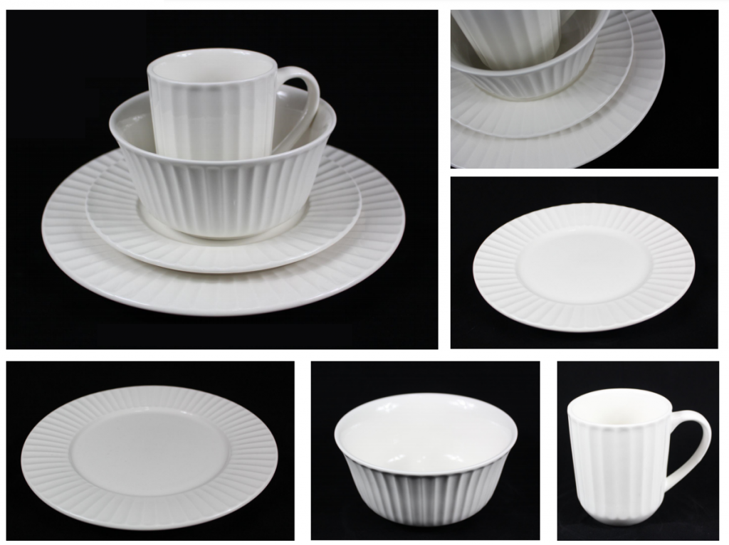 Product Description Aftersales White 20-Piece Set:four 4-piece place setting. Item No.:SX-07 Bone China Superior quality and design Dishwasher,microwave,and warm oven-safe